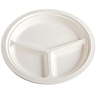 9" - 3 SECTION ROUND HEAVY MOLDED FIBER PLATES, 500 per case