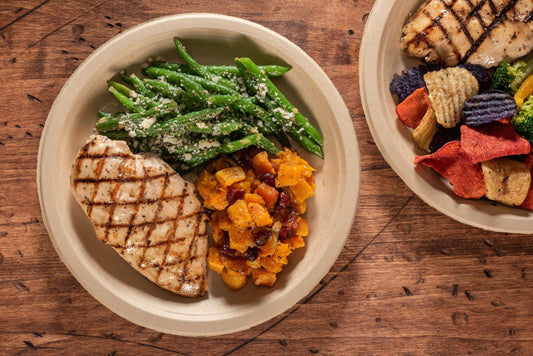 8" x 8" Compostable Clamshell | 3 Compartment | No PFAS Added